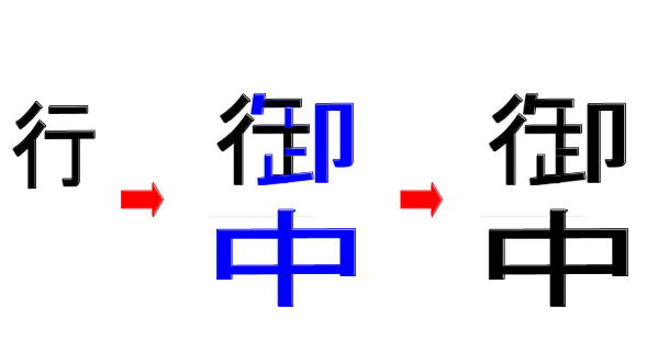 すなわち「行」を二本の斜線で消して、横に「御中」と添える。